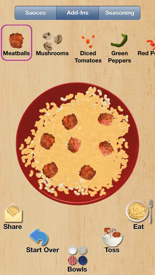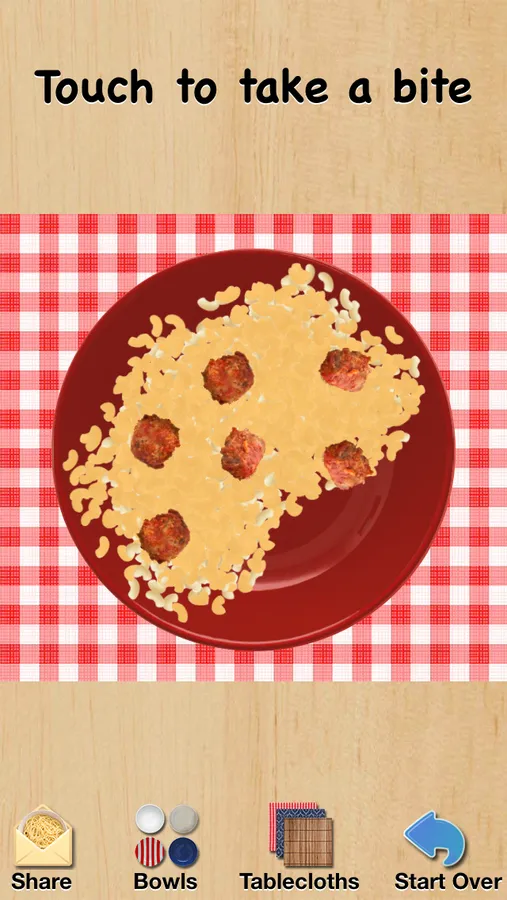 Choose the right bowl & tablecloth and then tap to take bites and clean your plate. You can even share your bowls with friends via email or Facebook.