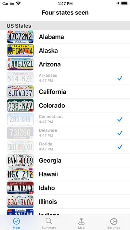 - See a map that shows you where you saw each state