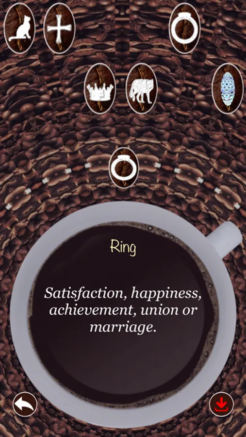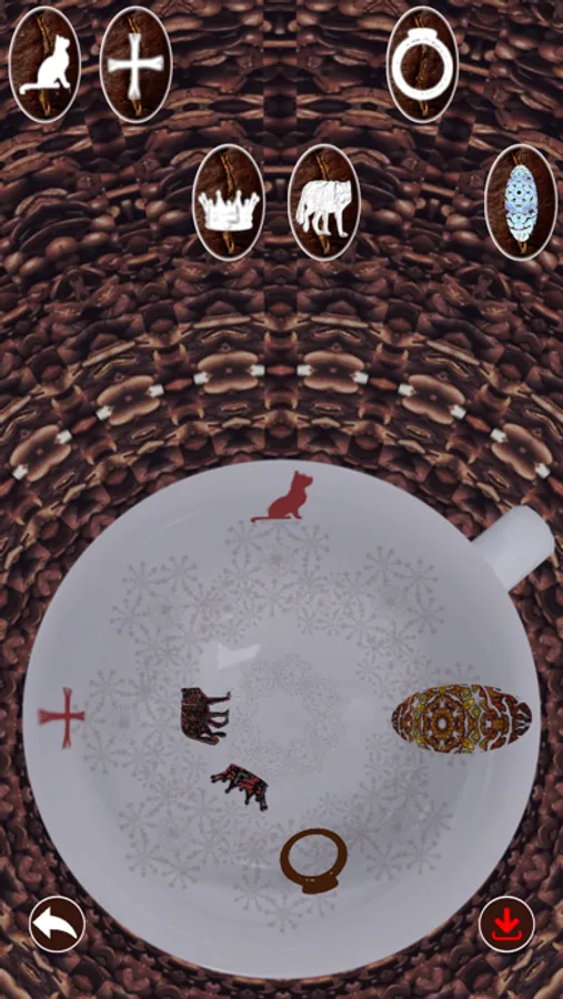 Present or immediate future events are sketched by the coffee marks on the edge of the cup while more long-term predictions appear at the bottom. To be able to interpret a cup, you also need to take into account the relationship between the different symbols.