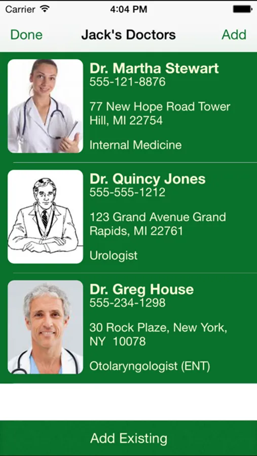2) Track your doctors (including pictures) and call him with the tap of a button.