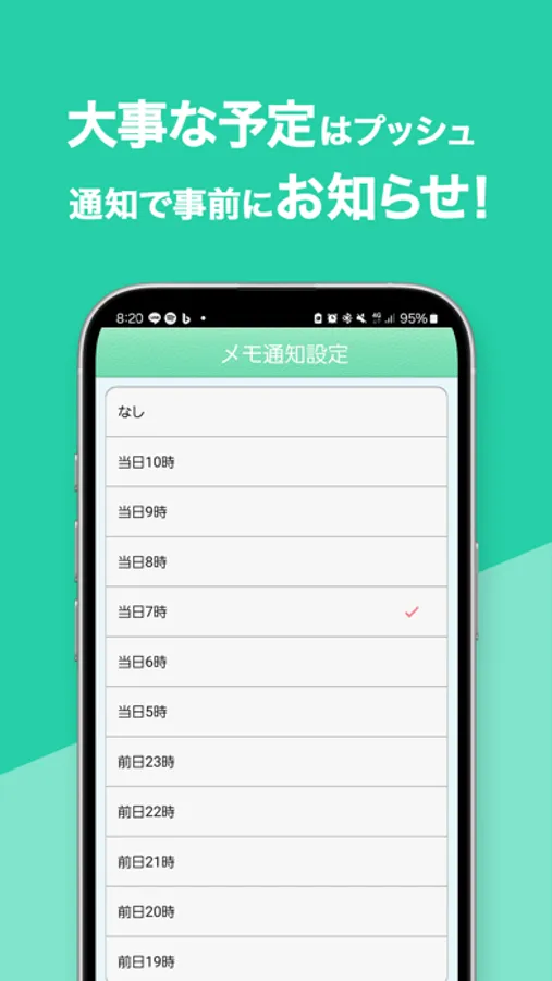 ⇒通知機能を使えば、シフトや予定の前日にリマインド通知が届きます。