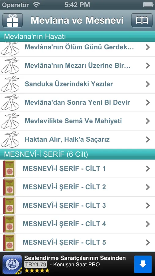 Mevlana'nin detaylı olarak hayatına ve 6 ciltlik ''Mesnevi-i Şerif'' eserinin tamamına ulaşıp okuyabileceğiniz iPhone/iPad uygulamasıdır.