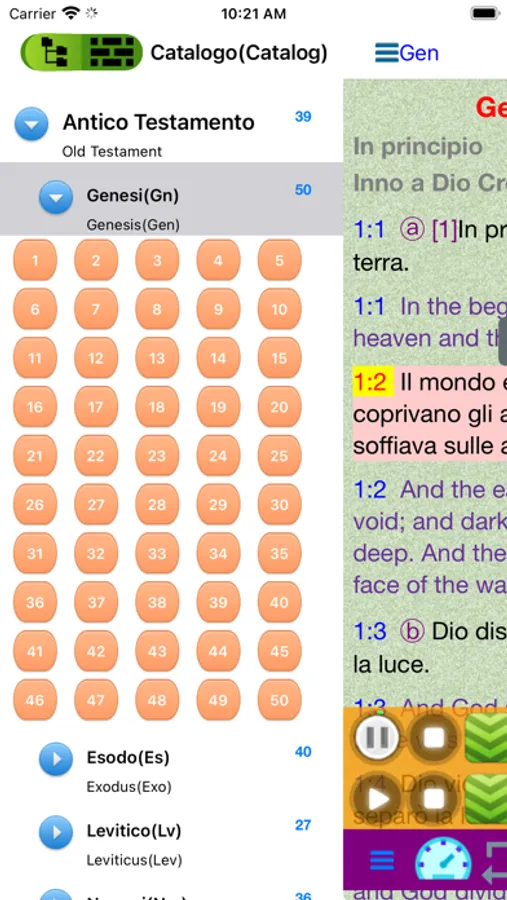 Holy Bible in Italian and English. You can learn the bible by contrast.