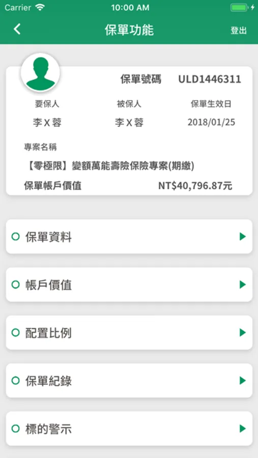 4.保單紀錄:繳費、配息、變更等歷史紀錄查詢。