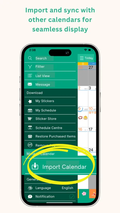 - Calendar Sync: Display other calendars simultaneously for a comprehensive view.