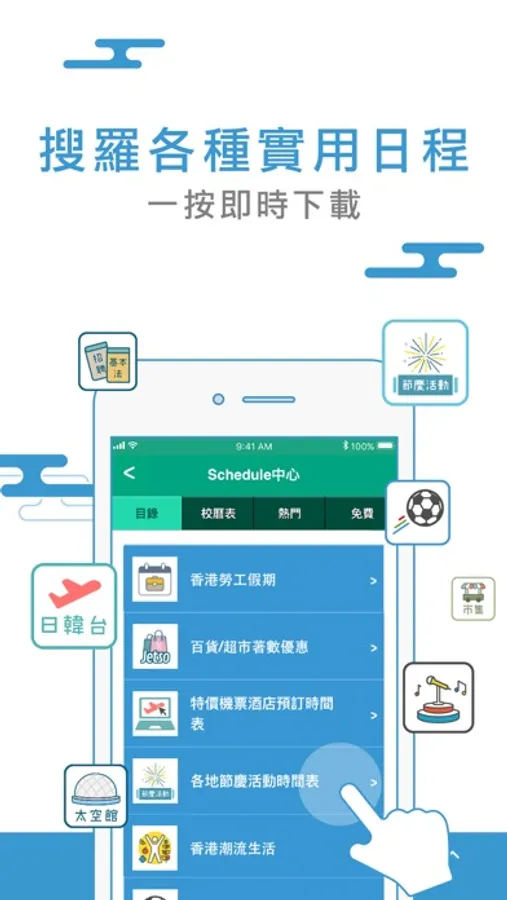 ・「Schedule中心」提供大量港人有興趣的日程免費下載到行事曆上