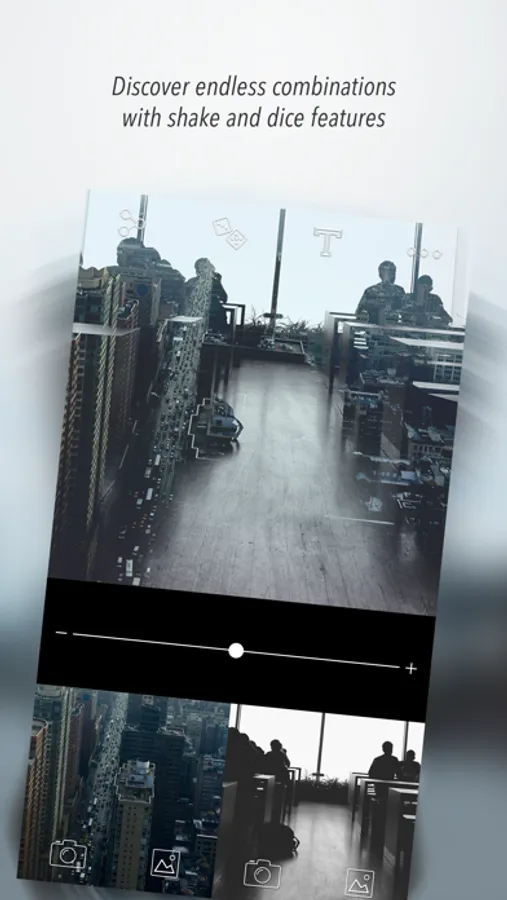 SHAKE your phone (or tap the dice icon) and I'll draw two pics from your camera roll and give you my proposition. Happy photo accidents are so fun, trust me :)