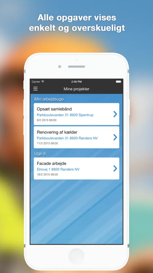 Ethvert projekt får tilknyttet en adresse eller et område, som kan findes på det integrerede kort. På den måde har folk i marken altid en kørselsvejledning ved hånden.