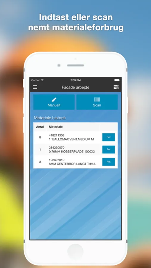 Der er mange penge at spare ved at registrere materialeforbruget på den rigtige måde. Det forhindrer spild og svind, og sikrer at alle forbrugte materialer tæller med i det samlede regnskab. Og så er det nemt. Når du scanner produktets stregkode med mobilen, finder den navn og materialetype frem, så man bare skal tilføje stykantal. Det sikrer præcis fakturering uden fejl og forviklinger. Du kan selvfølgelig også indtaste materialenavnet manuelt. Materialeforbruget bliver registreret direkte på et projekt og kan derfor trækkes direkte ud af systemet, når kunden skal have sin faktura.