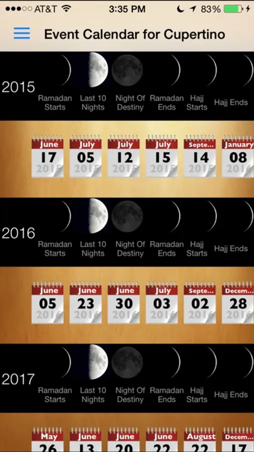 This app is able to calculate the following events of the year based on user's location for the next 10 years.