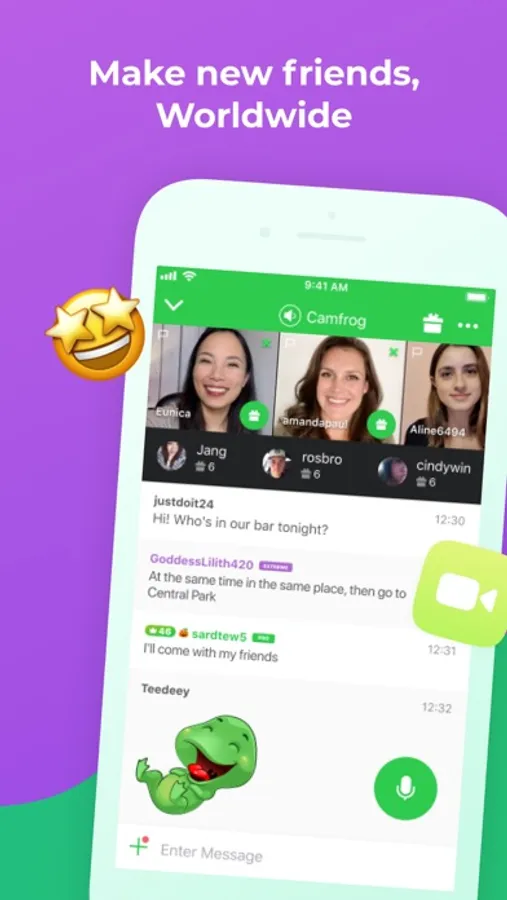 In Camfrog, you can start a random video chat with strangers or catch up with friends in our group video chat rooms. Our app is suitable for adult chatting - start a conversation and find meaningful connections!