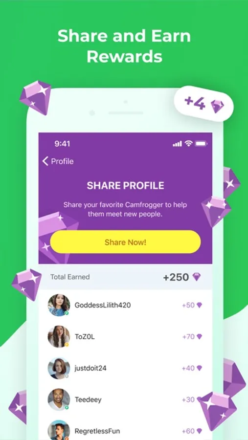 Earn exciting rewards like experience points, bonus coins, unique virtual gifts, and special status as a Camfrog member by simply engaging with the app.