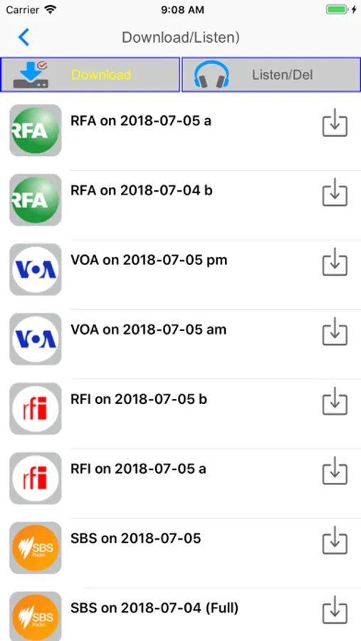 This application currently offers 3 radio channels within 8 to 15 days archived like: