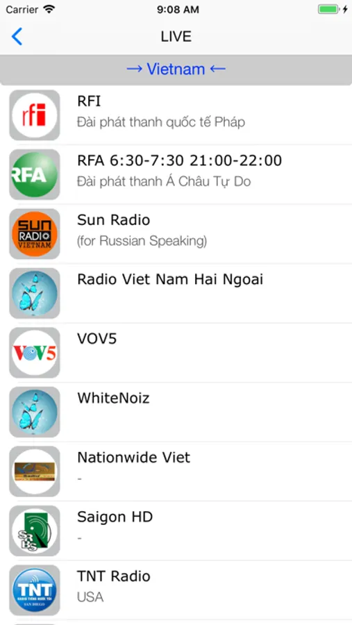 Radio Vietnam (in Vietnamese Language) by Khemara-Soft lets you listen the most popular VN Radio from the Web archiving in the convenience of your palm in one place without searching everywhere, stay up to date about what's happening in Vietnam and around the world, no matter where you are.