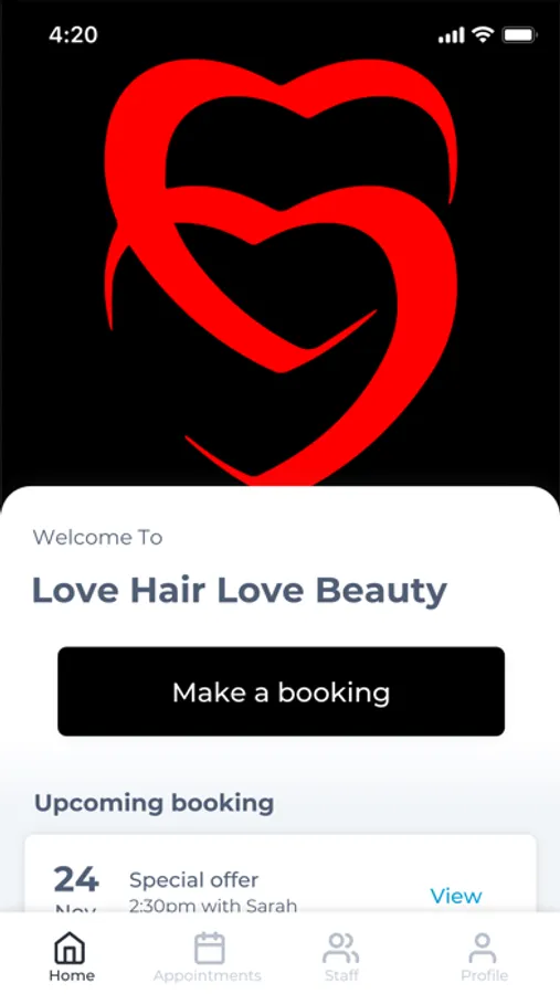 The Love Hair Love Beauty app makes booking your appointments and managing your loyalty points even easier. You're just a few taps away from feeling good and looking great!