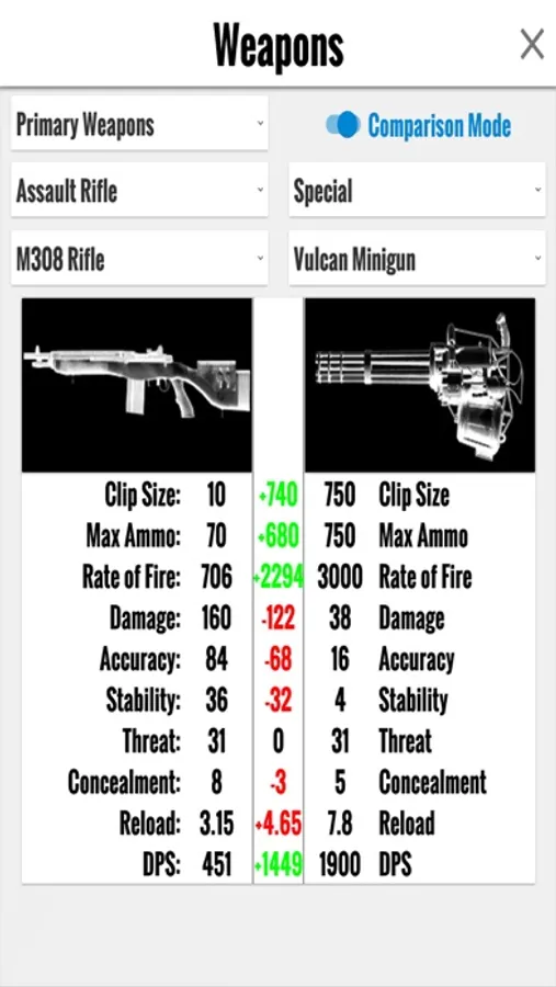 • Detailed weapon statistics and comparison, see weapons damage and much more in numbers!
