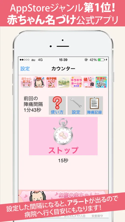 ・間隔が短くなってくると出産が近いことをユーザーにお知らせするので、病院へ行く目安にもなります。