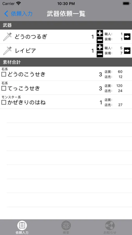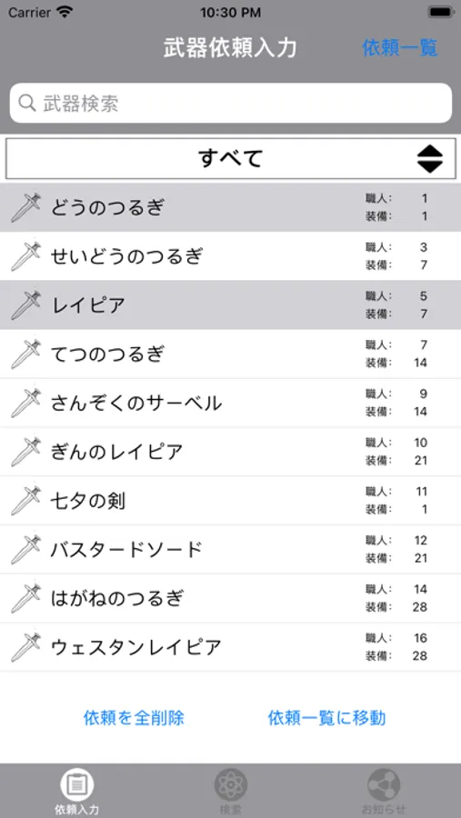 このアプリはドラゴンクエストXの『武器鍛冶依頼』を支援するツールです。