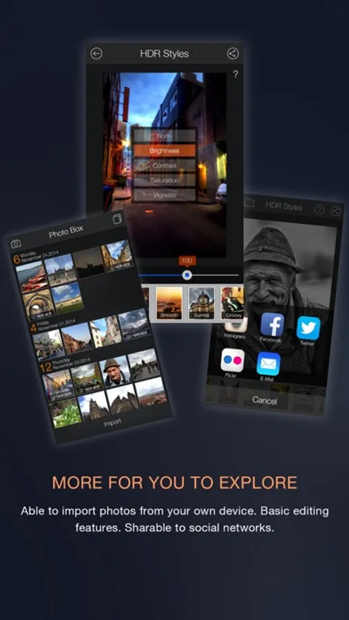 • Further refine the HDR preset styles by fine-tuning the brightness, contrast, saturation and Vignette for complete artistic control.