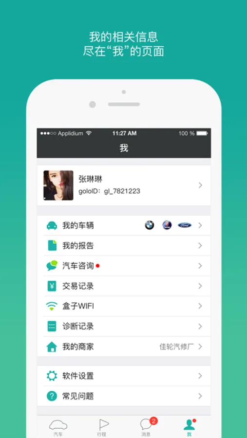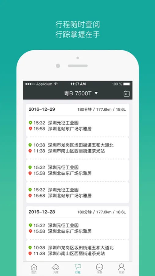 【行车记录】可查看每一段或每一天的行车记录,包括行车路线、总油耗、平均速度、总里程等;
