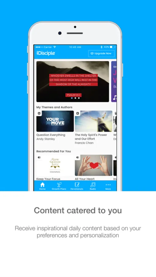 iDisciple conveniently delivers sermons, exclusive Growth Plans, devotionals, and music from hundreds of top Christian authors, speakers, ministries, and artists to you - any time, any place, on any device.