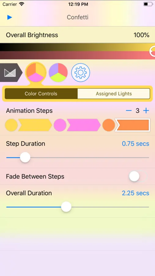 - Combine custom multi-step animation loops, static colors, or ON/OFF/Brightness commands for any sets of lights or groups. Activate them all with a single tap.