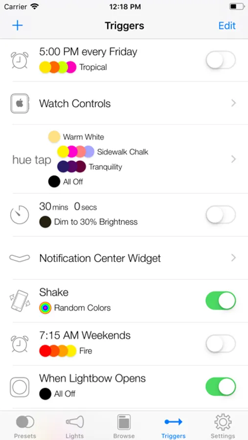 - Activate any preset with Siri, countdown timers, alarms, events like opening/closing Lightbow, or even a shake of your phone.