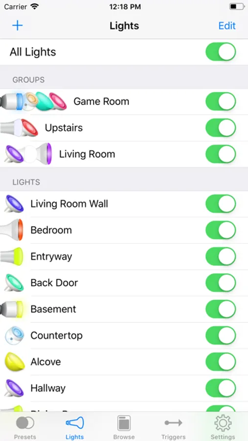 - Put your Philips or LIFX hardware into groups to control sets of lights together.