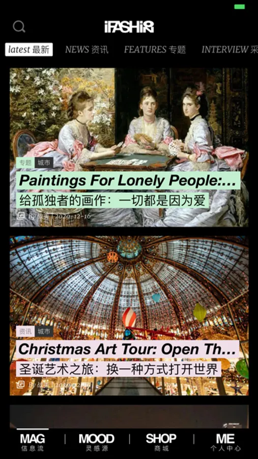 MAG信息流:时刻了解全球时装界的资讯;身临其境般参与在艺术家采访与对话中;随时观看影像大师创作的时装电影和短片。