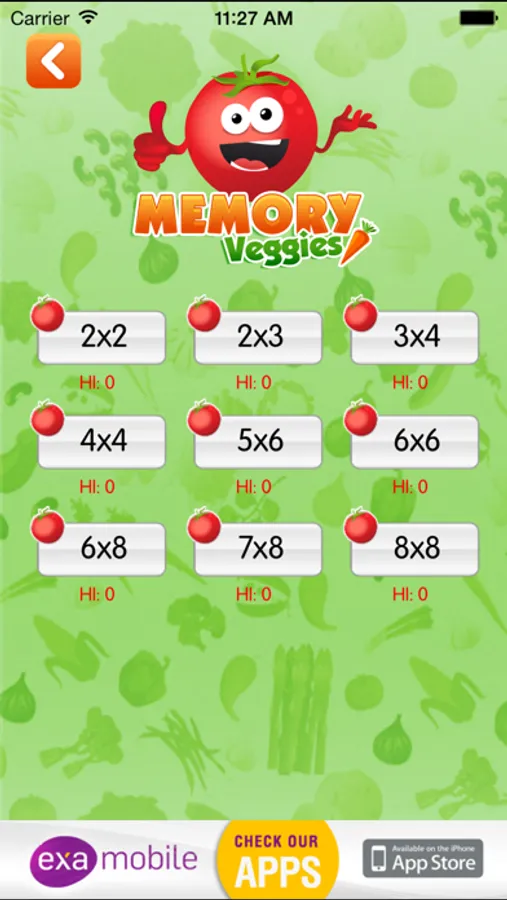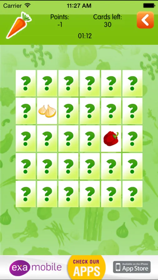 The game provide you at any level of an attractive play. Player can gain bonuses to compete for points, with time or other players. The current version of the game shows the cards of different vegetables. In App Store you can find different editions of the game with other graphics (fruits, things, animals, flags, sports and others).