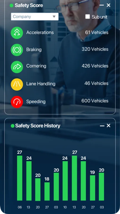 • Gamification - each driver is assigned with a safety score reflecting the frequency of their safety events. Drivers are motivated to improve their safety scores and team rankings.