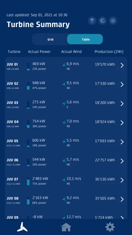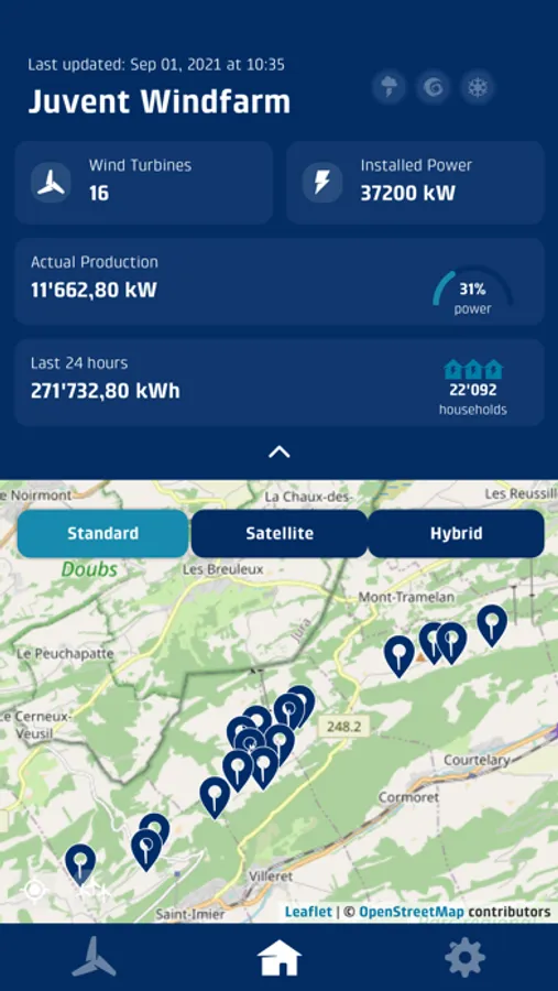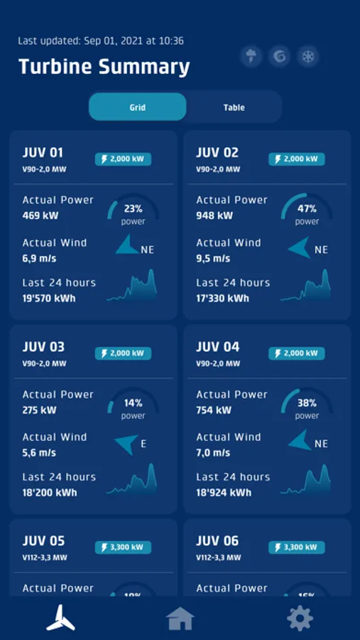 Experience the Juvent Wind farm and get live information about the wind turbines and the current alarm events.