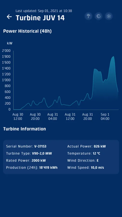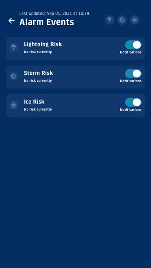 - Notifications in case of lightning, storm or ice fall/ice throw risk