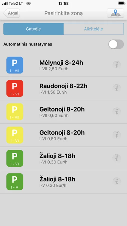- programėlė fiksuoja tikslų automobilio stovėjimo pradžios ir pabaigos laiką. Jeigu stovėjimas užsakomas, kai pasirinktoje rinkliavos zonoje mokamas stovėjimo laikas dar neprasidėjęs, jis aktyvuojasi prasidėjus mokamam stovėjimo laikui;