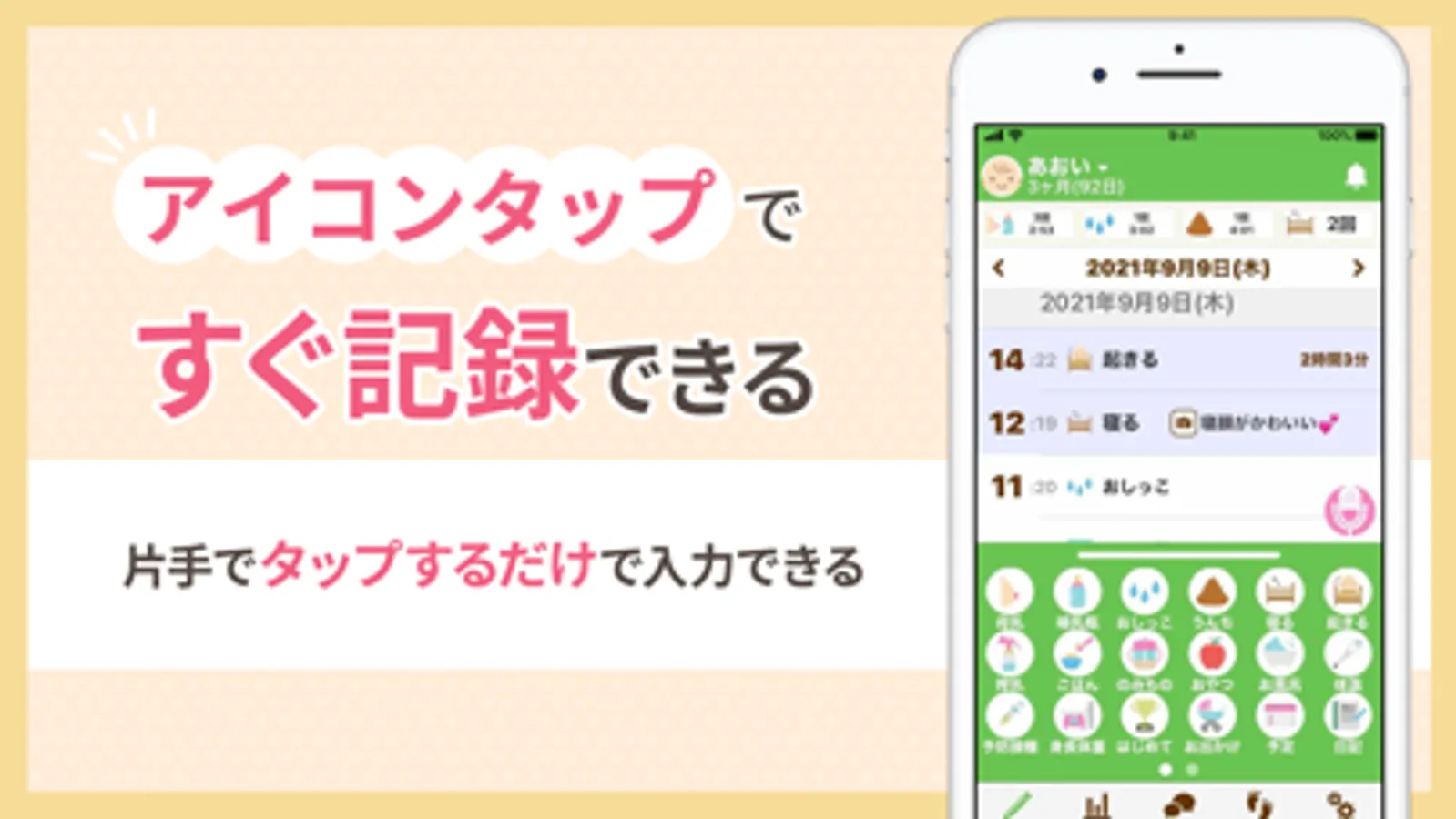 記録アイコンの順番も自分でカスタマイズできるので、記録したいアイコンに素早くアクセスが可能。