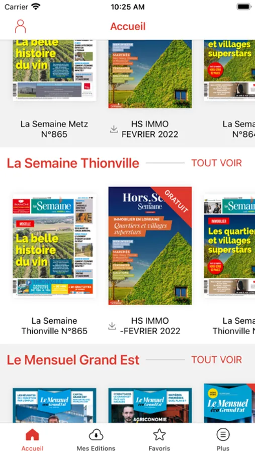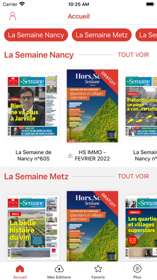 Vous pourrez retrouver vos journaux La Semaine de Metz, La Semaine de Nancy, La Semaine Thionville et Le Mensuel Grand Est au sein de l'application.