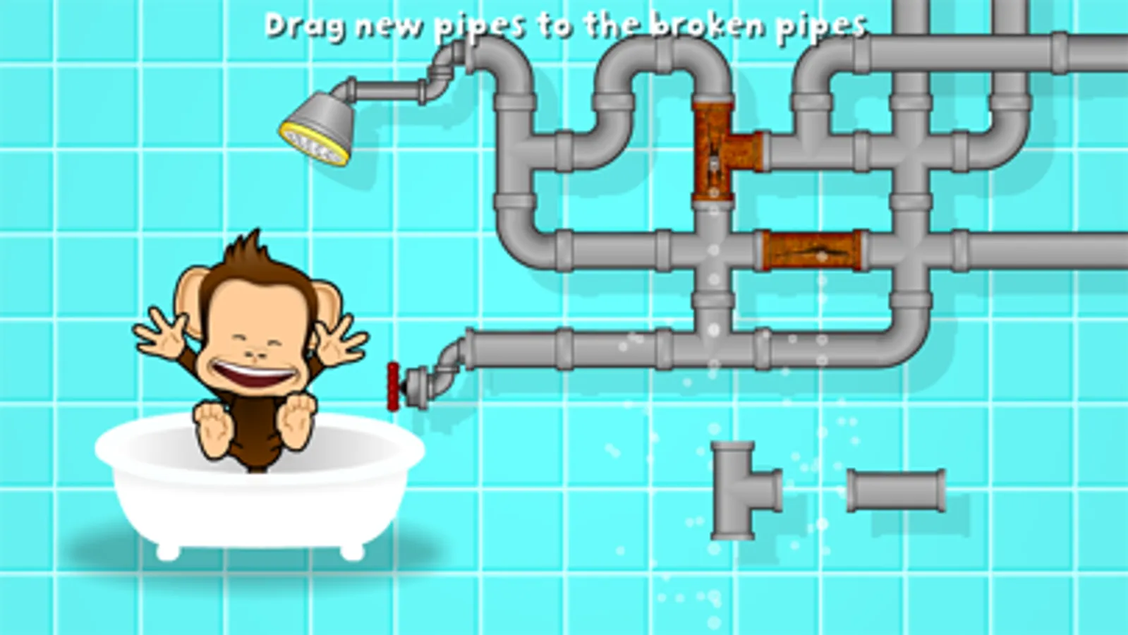 * Rub-A-Dub-Flub. Monkey needs a bath, but the pipes are broken! Match the puzzle pieces to fix the pipes.