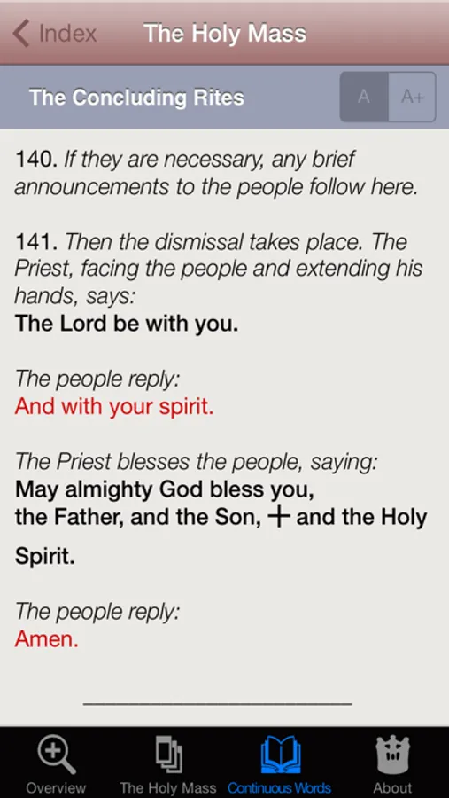 The Visual Guide To The Holy Mass app incorporates “The Order of Mass, Excerpts from the English translation of The Roman Missal, International Committee on English in the Liturgy, Inc”. The text used in the App has been proof-read and accepted by the International Commission on English in the Liturgy (ICEL) in Washington DC, USA. The permission to publish the text has been received from The Catholic Bishops' Conference of England and Wales in the UK.