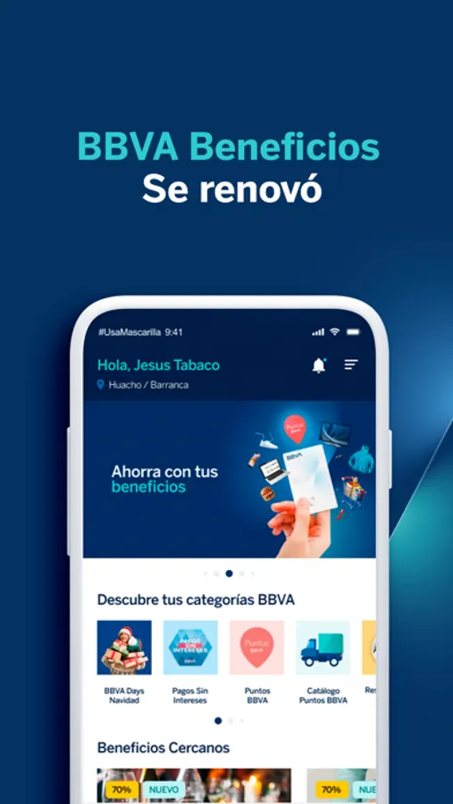 BBVA Beneficios te permite conocer todos los establecimientos donde por ser cliente del BBVA puedes acceder a promociones, compra con puntos, compra en pagos sin intereses, eventos, experiencias, entre otros.