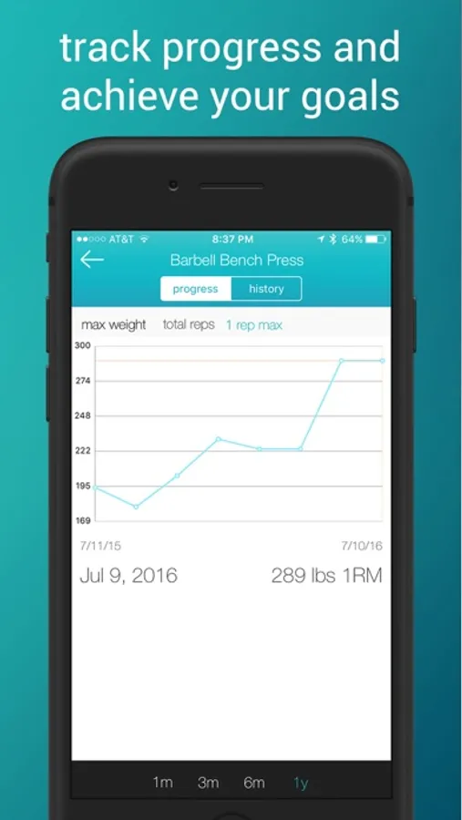 Quickly view past exercise progress with the tap of a button to see how you are progressing over time and view your history in beautiful chart views. (Pro)