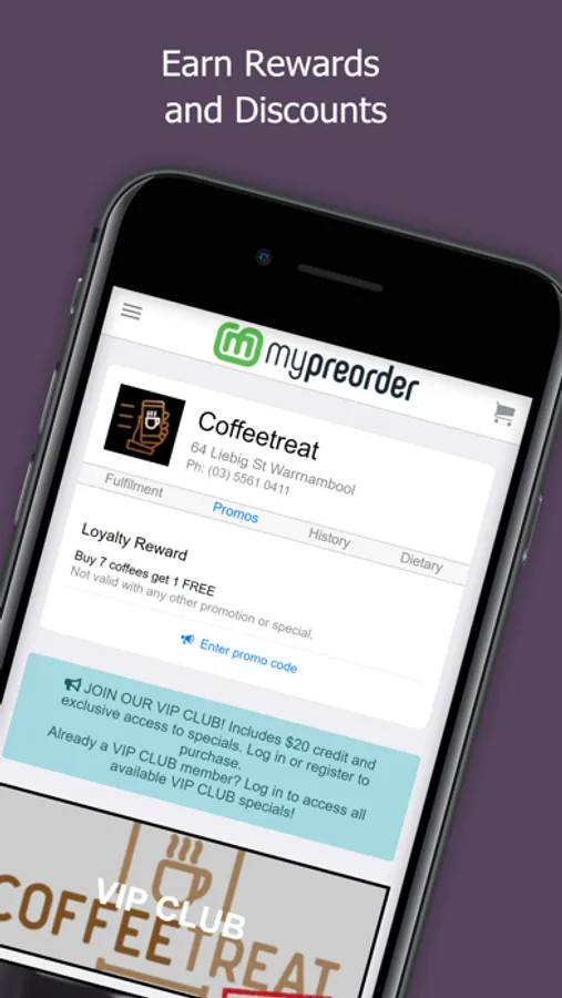 - Optionally 'top up' (add credit) to your account to use at any member location or to simply speed up the checkout process* (ideal for regular café-goers)