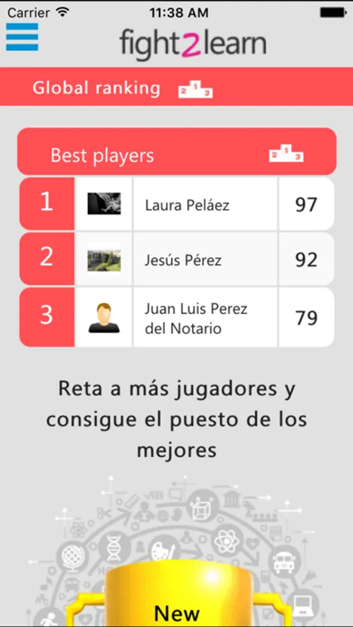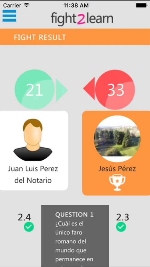 Fight2Learn es un juego de preguntas y respuestas en el que tienes un tiempo límite para retar a otros jugadores y ser el ganador.