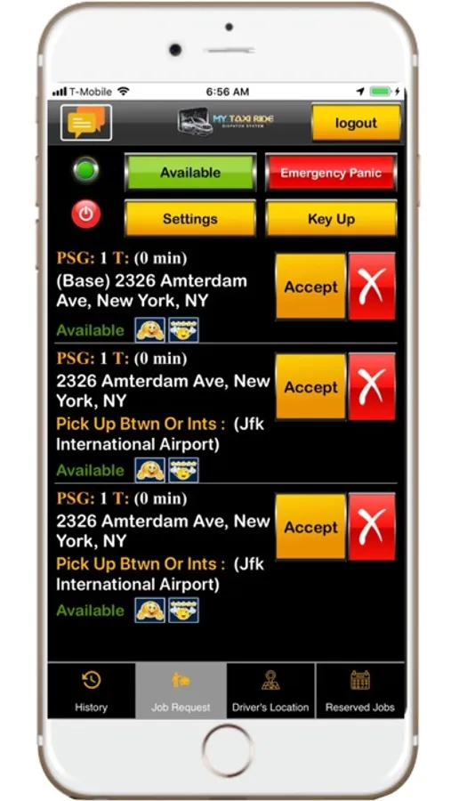 2- The system will receive the secured request from your business clients or individuals and automatically submit the job to all available drivers. This system is in complete compliance with New York City Taxi & Limousine Commission. The system has Auto Dispatcher and Auto Pilot for drivers not to touch the tables or any other mobile device while driving, that can help your company's financial security, help all your drivers avoid accidents while operating a the equipment, and keep them putting attention to the road. Accepting a trip is a one touch button if driver decides to manually accept jobs, this is a legal way for drivers to accept a job as mentioned by the New York City Taxi & Limousine Commission Commissioner.