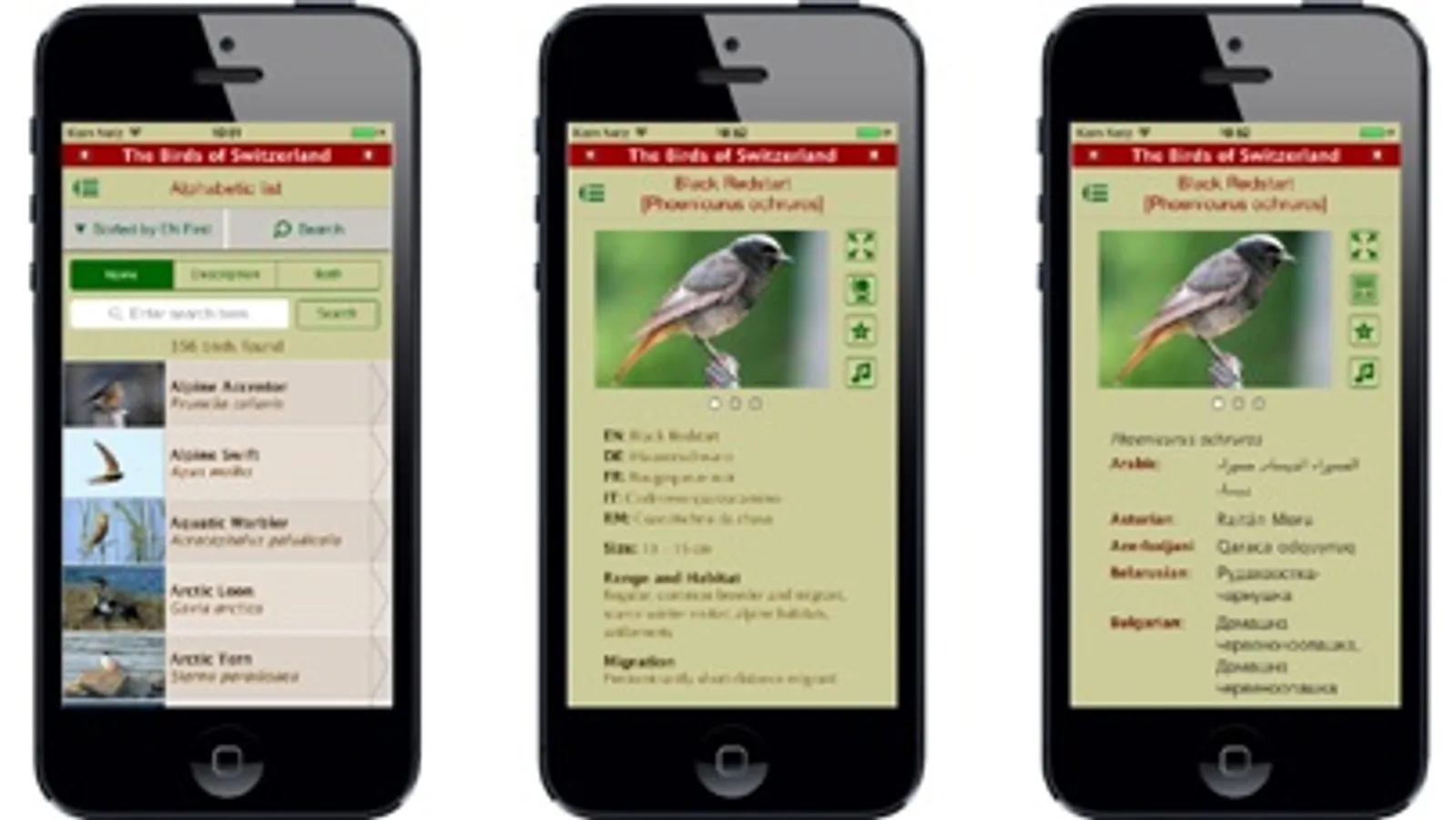 Almost 10,000 species of birds are currently known worldwide. Approximately 380 of these species have been observed in Switzerland alone, these are regarded as "natural wild birds". Several of these are to be regarded as vagrants that have been sighted very rarely or only once and, therefore, have not been included in this app. However, the app still features more than 350 bird species and the data of these species is available OFFLINE in this app!