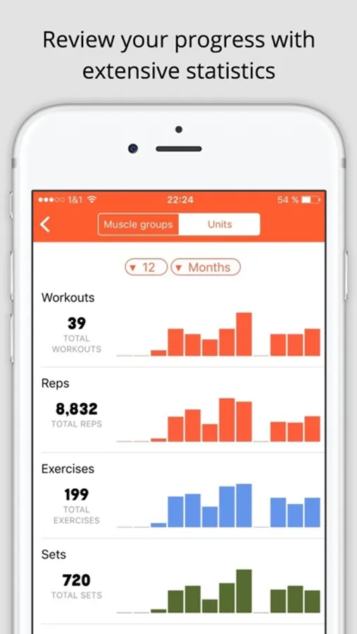 - Workout statistics (total weight/reps/sets/workouts over time and for every muscle group), total/average workout time and more!