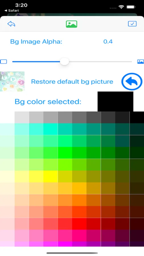 - You can change the background image and background color (Alpha value of the background image should be set smaller than 1 for the background color to be effective).