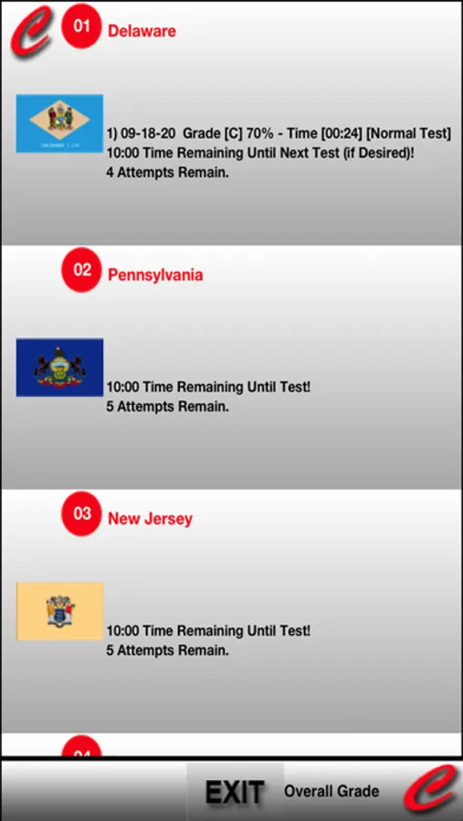 -Ten subjects are presented on a scrolling menu. The ten subjects of this application are the first ten states to join the newly formed Union. By default, the ten subjects are presented in progressive order. This app includes a feature in the Configurator that allows the user to shuffle the subjects.