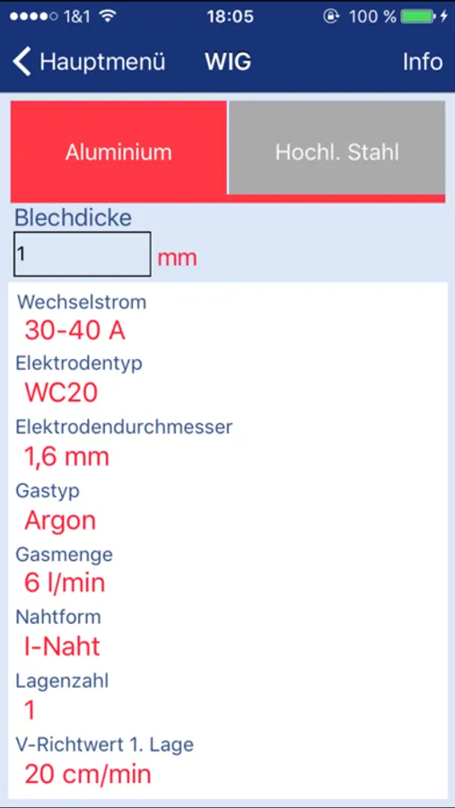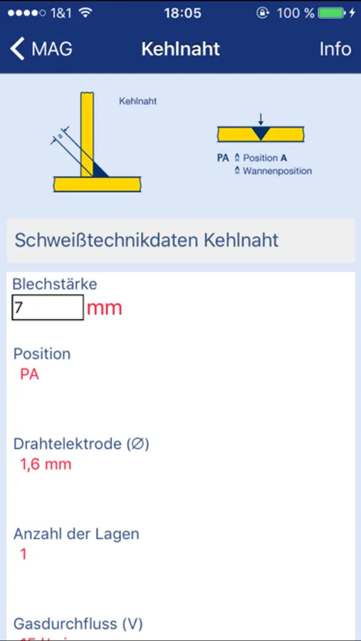 Die App dient zur Schweißdatenermittlung und enthält zusätzlich Umrechnungs- und physikalische Daten von Gasen.