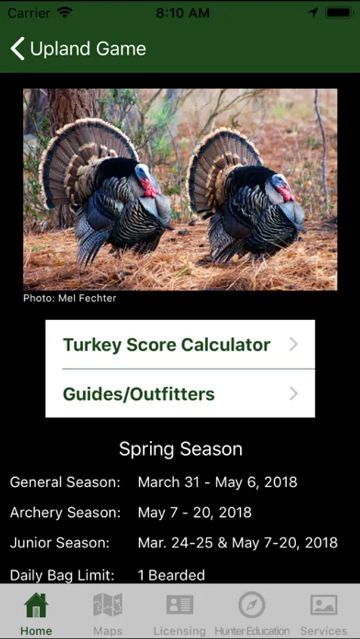 The app may be downloaded at no charge and you will receive access to all features EXCEPT the Deer and Waterfowl sections. Access to the Deer section requires an annual $1.99 subscription. The Waterfowl section will also require an annual $1.99 subscription, beginning when the app is updated with the 2022-2023 waterfowl season dates and bag limits, typically in mid to late summer. Payment will be charged to your iTunes Account at confirmation of purchase. Subscription automatically renews unless auto-renew is turned off at least 24-hours before the end of the current period. Account will be charged for renewal within 24-hours prior to the end of the current period, and identify the cost of the renewal. Subscriptions may be managed by the user and auto-renewal may be turned off by going to the user's Account Settings after purchase. Any unused portion of a free trial period will be forfeited when the user purchases a subscription.