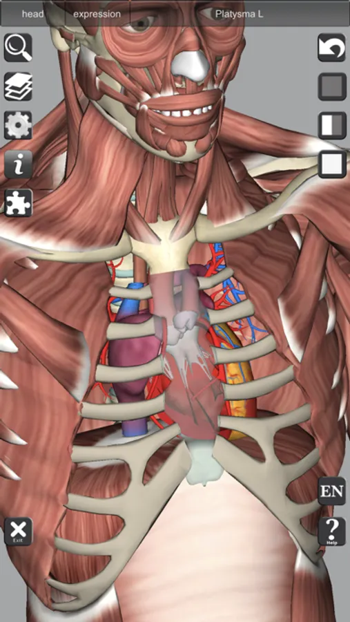- Virtual dissection: Peel layers of muscles and reveal the anatomical structures below them.